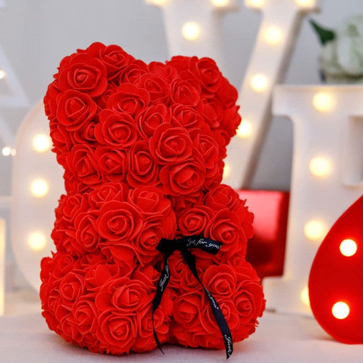 Ružice su izrađene od sunđera, pa se ne morate brinuti da će se lako oštetiti. Meda je upotpunjen mašnom na kojoj piše "Just for you", čineći ga pravim džentlmenom među plišanim igračkama. Ako to nije romantično, zaista ne znamo šta jeste!!!
