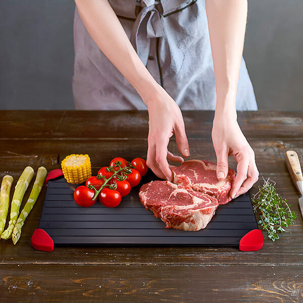 Brzo odmrzavanje: 🚀 Bez obzira da li su u pitanju pileća prsa, odrezak, svinjski kotleti ili riba, jednostavno stavite meso na dasku i uživajte u bržem procesu odmrzavanja.