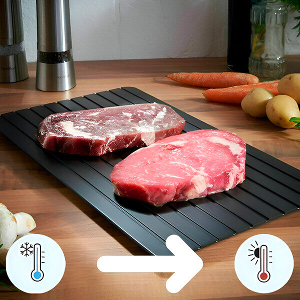 Ubrzajte pripremu obroka uz našu inovativnu dasku za brzo odmrzavanje! U samo 30 do 60 minuta, vaše meso, perad ili riba biće spremni za kuhanje, bez dodatnih hemikalija ili struje. 🕒
