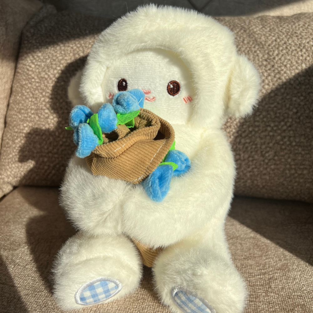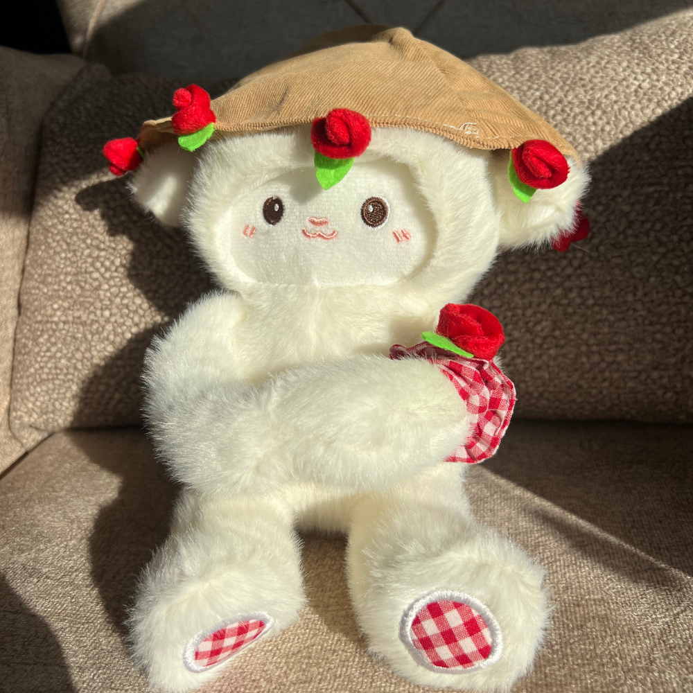 Sa nežnim izrazom lica, mekom teksturom i romantičnim detaljima, ova plišana ovčica nije samo igračka — ona je simbol topline, nežnosti i iskrene emocije.