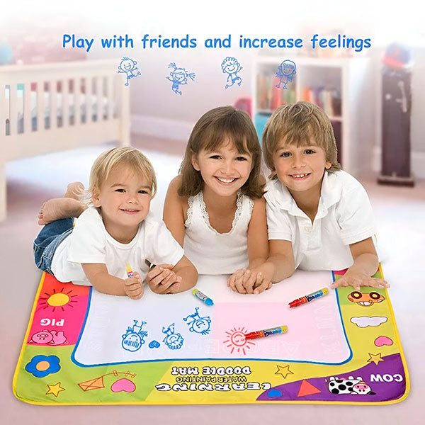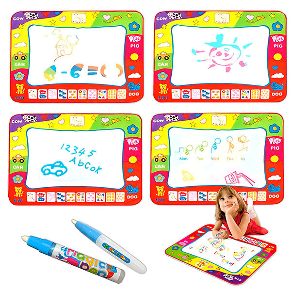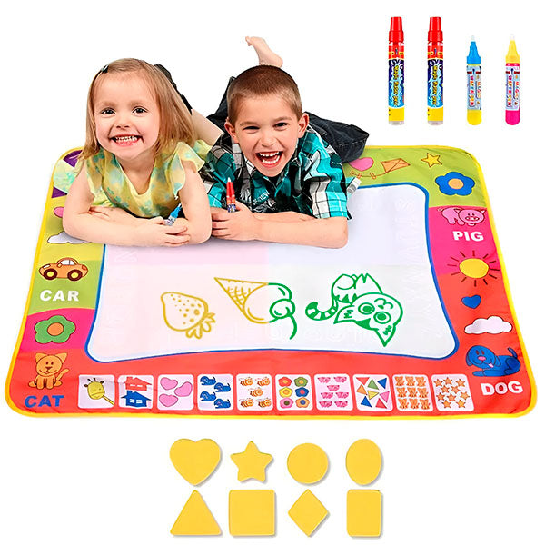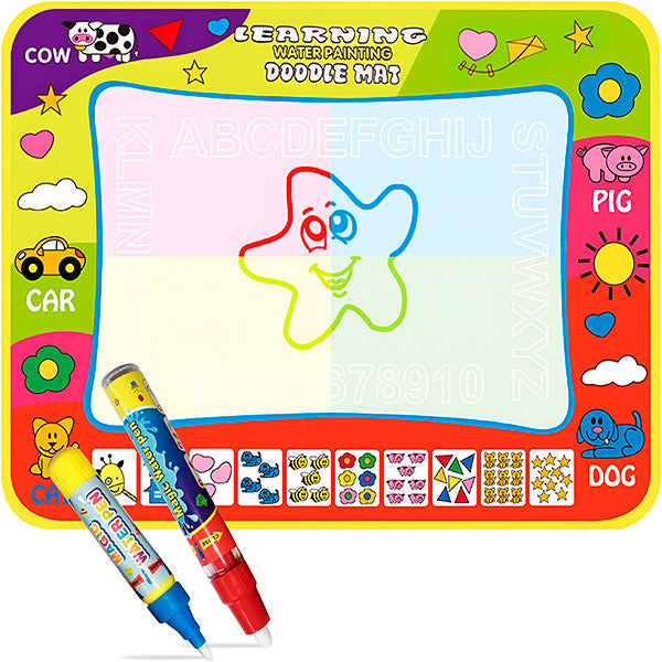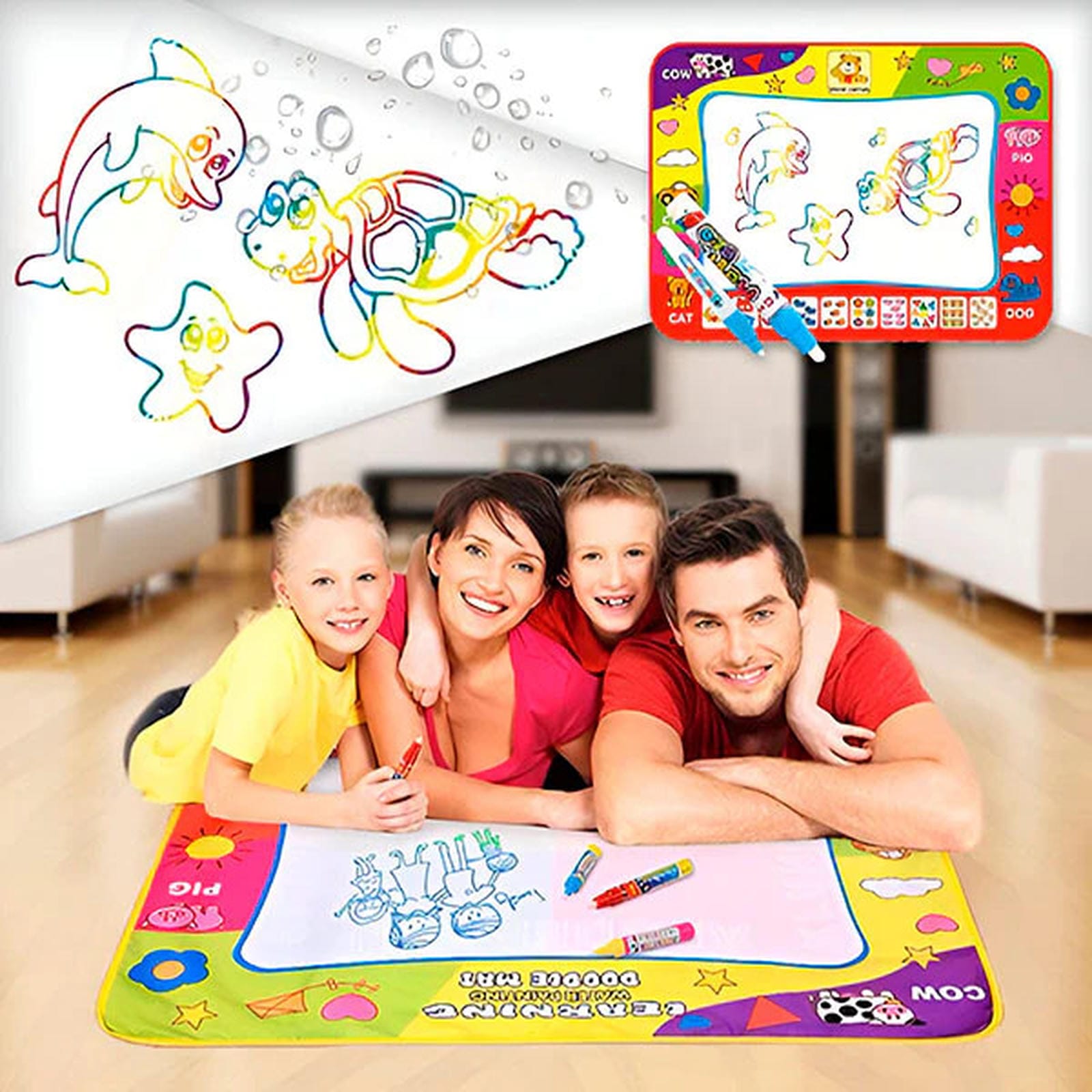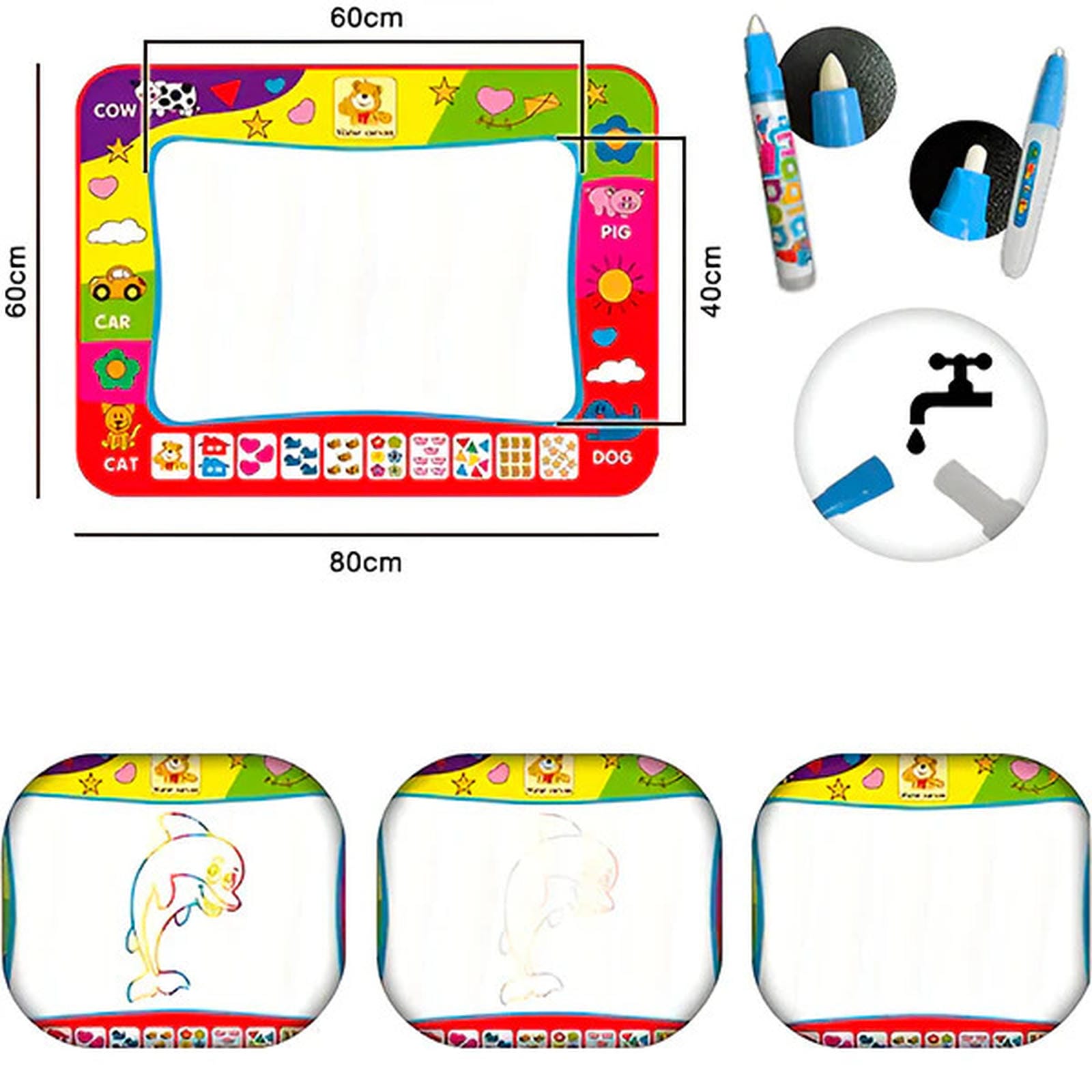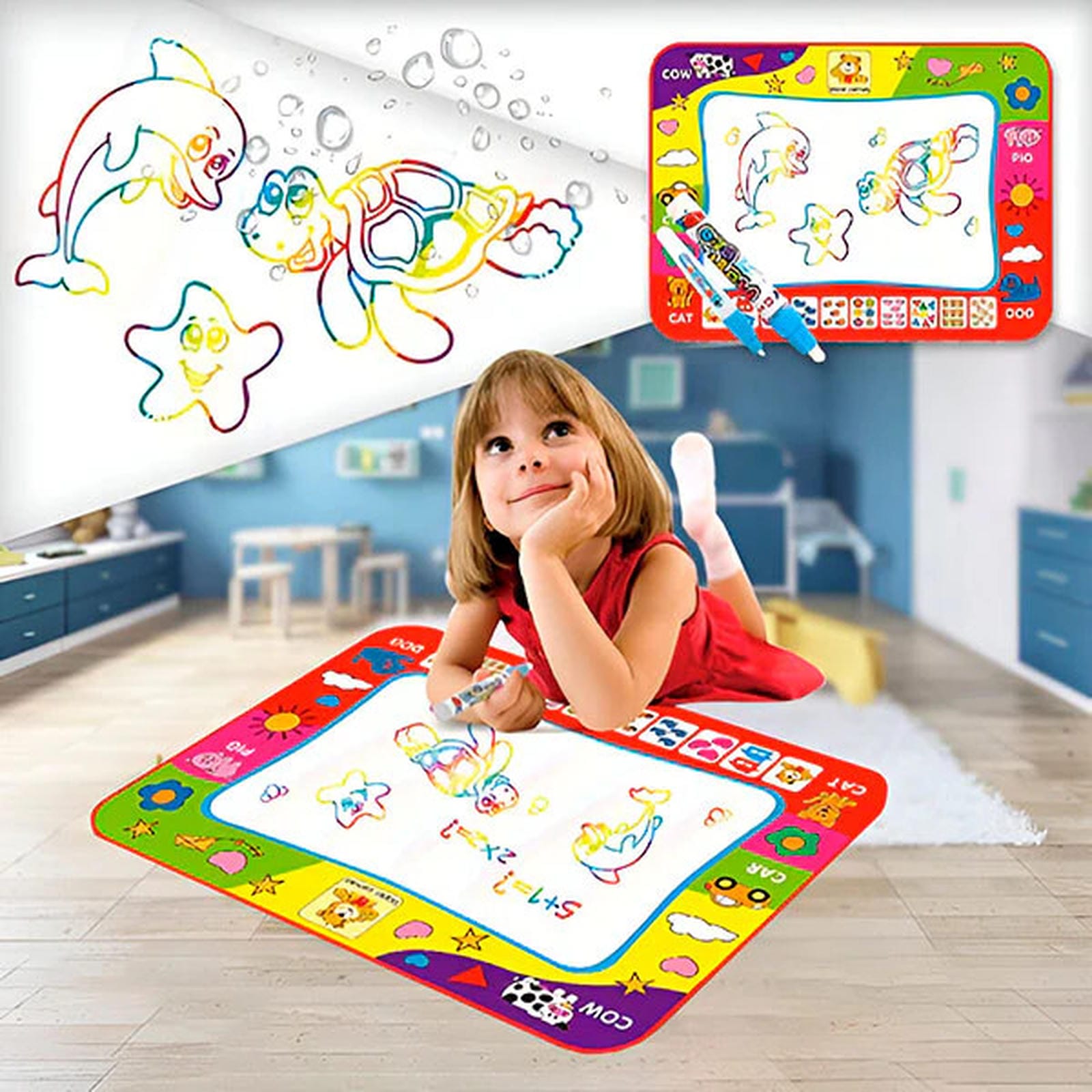 🌊 Čarobna podloga Kada dođe u kontakt s vodom, podloga se pretvara u svetlucavu površinu, a crteži magično nestaju dok se podloga suši, pružajući deci beskrajnu zabavu!