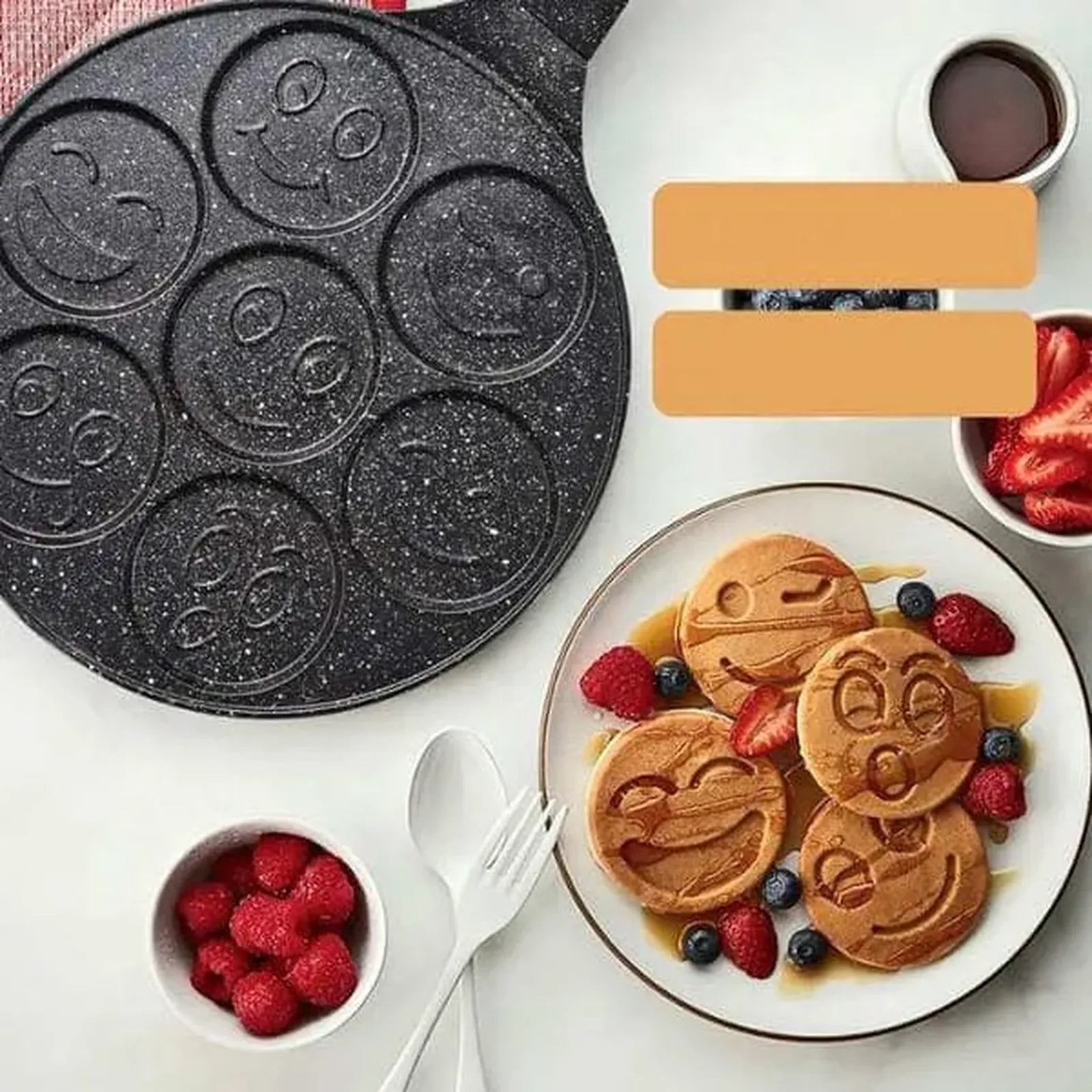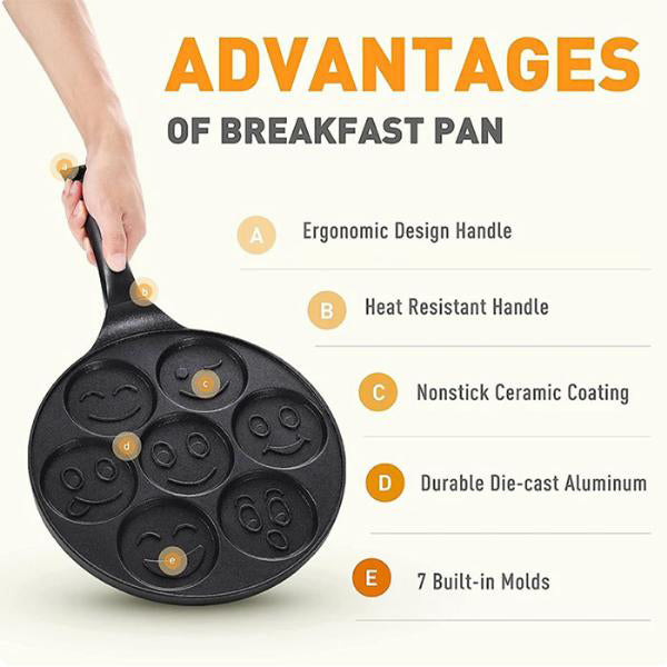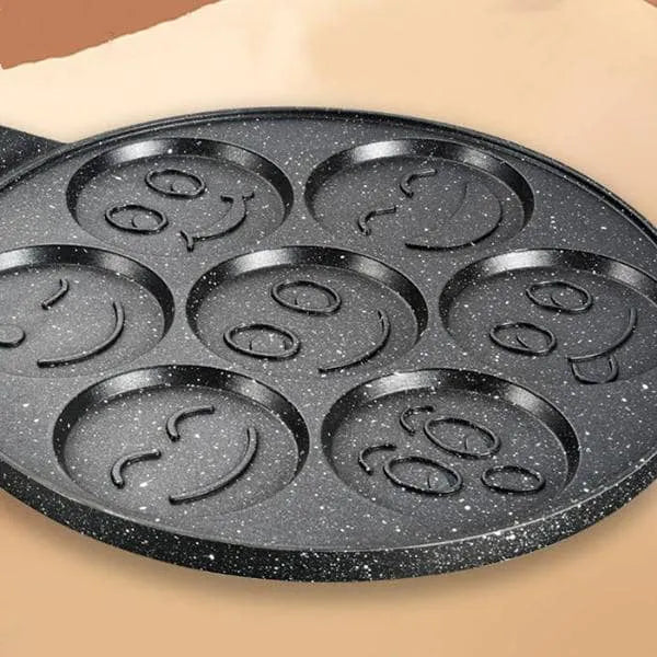Posebno dizajnirana udubljenja u obliku smajlića omogućavaju pečenje veselih palačinki, čineći svaki obrok zabavnim.
